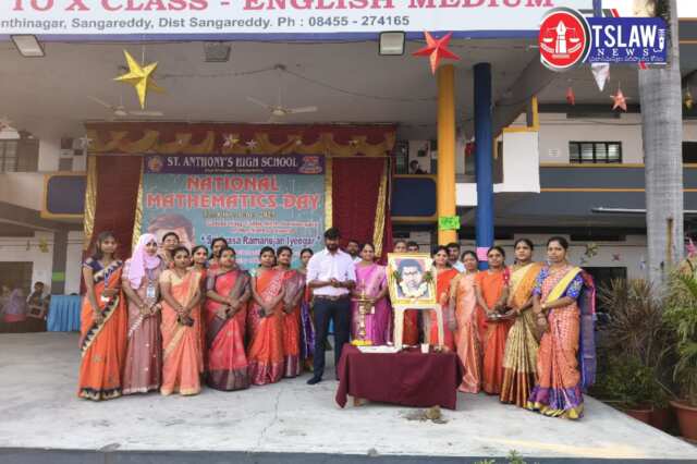 ఈ సందర్భాన్ని పురస్కరించుకొని పట్టణంలోని స్థానిక సంగారెడ్డి లోని శాంతినగర్ లో గల సెయింట్ ఆంథోనీస్ పాఠశాలలో గణిత దినోత్సవాన్ని కన్నుల పండుగగా జరుపుకున్నారు. ఈ సందర్భంగా సెయింట్ ఆంథోనీస్ విద్యాసంస్థల డైరెక్టర్ గౌరవ శ్రీ ఈ.విజయకుమార్ రెడ్డి, అకాడమిక్ డైరెక్టర్ మరియు ప్రధానోపాధ్యాయురాలు శ్రీమతి ఈ. అరుణ రెడ్డి ,అడ్మినిస్ట్రేటివ్ హెడ్ గౌరవ శ్రీ ఈ. జయపాల్ రెడ్డి పాఠశాల వైస్ ప్రిన్సిపాల్ గౌరవ శ్రీ ప్రదీప్ లక్కిశెట్టి మరియు గణితోపాధ్యాయులు, శ్రీనివాస రామానుజన్ అయ్యంగార్ చిత్రపటం ముందు జ్యోతి ప్రజ్వలనుగావించి ,పటాన్ని పూలమాలతో అలంకరించి కార్యక్రమాన్ని ప్రారంభించారు.
