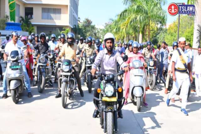 “హెల్మెట్ ధరించండి – ప్రాణాలు కాపాడుకోండి” అనే నినాదాలతో ర్యాలీ నిర్వహించారు.