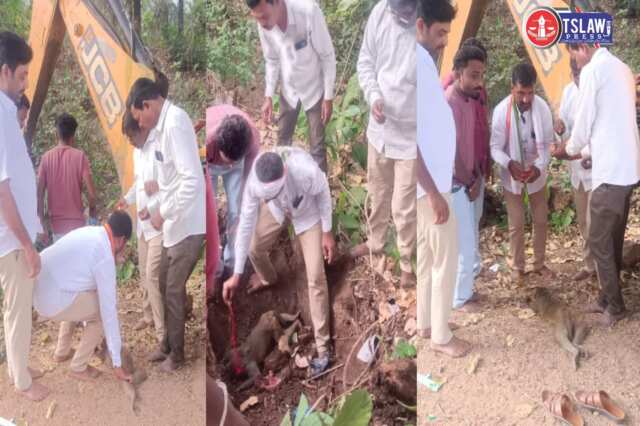 జగిత్యాల జిల్లా కల్లెడ వద్ద రోడ్డు ప్రమాదంలో వానరుడు మృతి చెందడం జరిగింది. జగిత్యాల నుండి వస్తున్న బుగ్గారం మండల కాంగ్రెస్ పార్టీ నాయకులు రోడ్డుపైన చనిపోయిన వానరుడుని చూసి, నాయకులకు మూగజీవిపై మనసు చలించి, సానుభూతితో వారు వెంటనే ఆగి ఆ మూగ జీవి కోతిని అక్కడే ఉన్నా JCB తో తీసుకెళ్లి ఊరు చివర హిందూ సంప్రదాయం ప్రకారం JCB సహాయంతో గోతి తవ్వించి అంతిమ సంస్కారాలు నిర్వహించినట్టు తెలిపారు.ఈ కార్యక్రమంలో బుగ్గారం మండల కాంగ్రెస్ పార్టీ నాయకులు బుగ్గారం గ్రామ ఉపసర్పంచ్ లావణ్య శ్రీనివాస్, గోపులాపూర్ గ్రామ సర్పంచ్ బీర్పూర్ తిరుపతి, బుగ్గారం మండల గ్రామ కాంగ్రెస్ ఉపాధ్యక్షులు నరస గౌడ్, రాజన్న తదితర నాయకులు జగిత్యాల పాల్గొన్నారు.