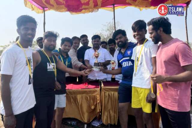 సంగారెడ్డి జిల్లా, సదాశివపేట మండలం:మెలగిరిపేట ఫ్రెండ్స్ యూత్ ఆధ్వర్యంలో వాలీబాల్ పోటీలు ఈ కార్యక్రమంలో గ్రామ సర్పంచ్ షాబుద్దీన్ మాజీ సర్పంచ్ రామ్ రెడ్డి శ్రీనివాస్ రెడ్డి మార్కెట్ కమిటీ డైరెక్టర్ మధుకర్ రెడ్డి పంచాయతీ కార్యదర్శి రాములు ఉపసర్పంచ్ యాదయ్య వార్డు సభ్యులు మల్లారెడ్డి శ్రీనివాస్ నరసింహారెడ్డి మహేందర్ యాదుల్ యేసుబు అలాగే ఉషయ్య రియాజ్ ఫ్రెండ్స్ యూత్ సభ్యులు నవాజ్ అహ్మద్ పాల్గొన్నారు ఈ కార్యక్రమంలో ఆరు జట్లు తలపడ్డాయి కేప్టెన్స్ గా సర్పంచ్ షాబుద్దీన్ ప్రశాంత్ రెడ్డి నిజాముద్దీన్ అహ్మద్ నరేందర్ భాస్కర్ జట్లు తలపడ్డాయి ఫైనల్ మ్యాచ్ లో అద్భుత ప్రతిభ కనబరిచి విన్నరుగా ప్రశాంత్ రెడ్డి జట్టు ప్లేయర్స్ మారుతి డాకారెడ్డి శివాజీ రామాచారి మదన్ రన్నర్ గా నిజాముద్దీన్ జట్టు విజయం సాధించాయి విన్నర్ కు చంద్రయ్య 5000 నగదు బహుమతి రన్నర్ కు 3000 రూపాయల నగదు బహుమతి రామ్ రెడ్డి ఇవ్వడం జరిగింది అలాగే అద్భుత ప్రతిభ కనబరిచిన రామాచారి మరియు ప్రణీత్ కు ఉప సర్పంచ్ యాదయ్య వెయ్యి రూపాయలు ఇవ్వడం జరిగింది అలాగే ఈ ఫ్రెండ్స్ యూత్ వాలీబాల్ టోర్నమెంట్ కప్స్ మరియు మెడల్స్ ను నవాజ్ అలాగే ఫ్రెండ్స్ యూత్ ఆర్గనైజర్ అహ్మద్ భోజనాలను ఏర్పాటు చేయడం జరిగింది ఈ కార్యక్రమంలో గ్రామ ప్రజలు మరియు యువజన సంఘాల సభ్యులు ఫ్రెండ్స్ యూత్ సభ్యులు అందరూ పాల్గొన్నారు
