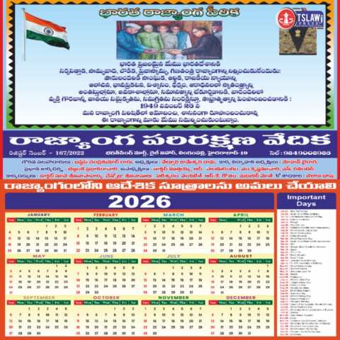నిర్మల్ జిల్లా: ఈరోజు నిర్మల్ పట్టణ సీఐ నైలు గారితో రాజ్యాంగ పరిరక్షణ వేదిక నూతన సంవత్సర 2026 క్యాలెండర్ ఆవిష్కరింపజేసిన రాజ్యాంగ పరిరక్షణ వేదిక రాష్ట్ర కార్యదర్శి శ్రీనివాస్ నూనెల ఆచార్య.శ్రీనివాస్ ఆచార్య మాట్లాడుతూ నూతన సంవత్సర క్యాలెండర్ లో రాజ్యాంగ పీఠిక తో తీసుకురావడం విశేషమని. మరియు ప్రభుత్వాలు రాజ్యాంగంలోని ఆదేశిక సూత్రాలను అమలుపరచాలని. రాజ్యాంగాన్ని పూర్తిగా అమలు చేయాలని. విద్య వైద్యం ఉచితంగా ప్రభుత్వాలే జాతీయం చేయాలని సంపూర్ణ అక్షరాస్య దిశగా ప్రభుత్వాలు పనిచేయాలని సమ సమాజ నిర్మాణానికి ప్రభుత్వాలు పునాదివేసి రాజ్యాంగాన్ని పూర్తిగా అమలు చేయాలని. రాజ్యాంగ పీఠికను స్కూళ్లలో మరియు కళాశాలలో మరియు రోజు ప్రార్ధన చేసే విధంగా సమయాన్ని కేటాయించి అమలుపరచాలని మరియు ప్రభుత్వ కార్యాలయంలో రాజ్యాంగ పీఠికను పెట్టాలని. ప్రభుత్వానికి డిమాండ్ చేయడం జరిగింది. రాజ్యాంగం వర్ధిల్లాలి ప్రజాస్వామ్యం వర్ధిల్లాలి. ఈ కార్యక్రమంలో జిల్లా కార్యవర్గ సభ్యులు రామకృష్ణ, శ్రీనివాస్ వర్మ తదితరులు పాల్గొన్నారు.