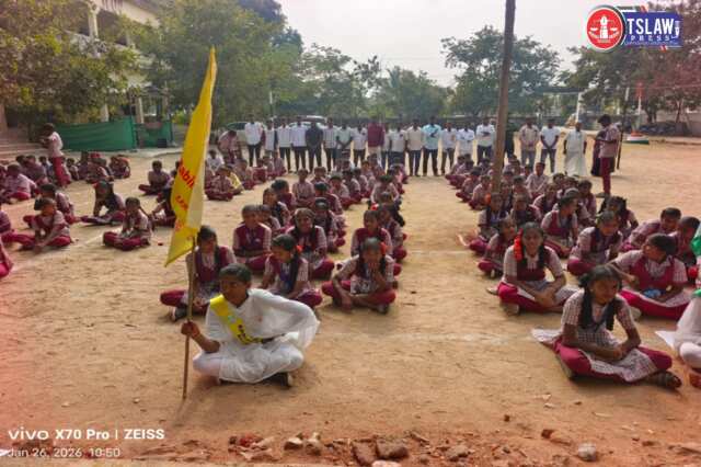 నల్గొండ జిల్లా: నల్గొండ మండలం ఎం. దోమలపల్లి గ్రామంలో జెడ్పిహెచ్ఎస్ జిల్లా ప్రజా పరిషత్ పాఠశాలలో 77వ గణతంత్ర దినోత్సవ వేడుకలు ఘనంగా జరిగాయి ఈ వేడుకలలో గ్రామ సర్పంచి ఏళ్ల శిల్ప సతీష్ రెడ్డి, గారు మరియు స్కూల్ హెడ్ మాస్టర్ కొమ్ము శ్రీనివాస్, గారు అలాగే ఉప సర్పంచ్ గాదె సురేష్, గారు గ్రామ పెద్దలు ప్రముఖులు, విద్యార్థులు పాల్గొనడం జరిగింది స్కూల్ టెన్త్ విద్యార్థులకు ప్రోత్సాహంగా గ్రామ సర్పంచ్ గారు ఫస్ట్ క్లాస్ మార్కులు వచ్చిన వారికి ప్రథమ బహుమతిగా 10,000 రూపాయలు ,రెండవ బహుమతిగా 5000 రూపాయలు, ఇస్తానని తెలుపుతూ నలగొండ జిల్లాలో ఫస్ట్ ర్యాంక్ మార్కులు రావాలని తెలిపారు అలాగే స్కూల్ హెడ్మాస్టర్ గారు కొమ్ము శ్రీనివాస్ గారు మాట్లాడుతూ రాజ్యాంగం లో ఉన్నటువంటి నిధులు ఎంత ముఖ్యమో విధులు కూడా అంతే ముఖ్యమని మాట్లాడుతూ ప్రతి ఒక్కరూ ఉపాధ్యాయులు గాని పోలీస్, డాక్టర్స్, లాయర్స్ , కలెక్టర్లు,కానీ ప్రతి ఒక్క గవర్నమెంట్ ప్రతినిధులు విధులను ప్రతి ఒక్కరు కూడా చట్టంగా న్యాయపరంగా విధులని నిర్వహించాలని ప్రతి ఒక్క భారతీయుడు అదేవిధంగా ఆలోచించాలని అలాగే డాక్టర్ బి.ఆర్ అంబేద్కర్ గారు రాసినటువంటి రాజ్యాంగాన్ని పోరాడి తెచ్చుకున్న హక్కులను అమలు చేసుకొని దేశ అభివృద్ధికి తోడ్పడాలని పిలుపునిచ్చారు అదే విధంగా స్కూల్ విద్యాపకులు మరియు విద్యార్థులు దేశ స్వతంత్ర సమరయోధులను వీరులను కొనియాడారు దేశ భక్తి చాటారు ఈ కార్యక్రమంలో జడ్పీహెచ్ఎస్ స్కూల్ హెడ్మాస్టర్ కొమ్ము శ్రీనివాస్ గారు గ్రామ సర్పంచ్ ఏళ్ల శిల్ప సతీష్ రెడ్డి మరియు TSLAW న్యూస్ నల్గొండ జిల్లా ఇంచార్జ్ కానుగుల స్వామి గారు విద్యాపకులు విద్యార్థులు విద్యార్థుల తల్లిదండ్రులు మరియు గ్రామ పెద్దలు యువకులు తదితరులు పాల్గొన్నారు.