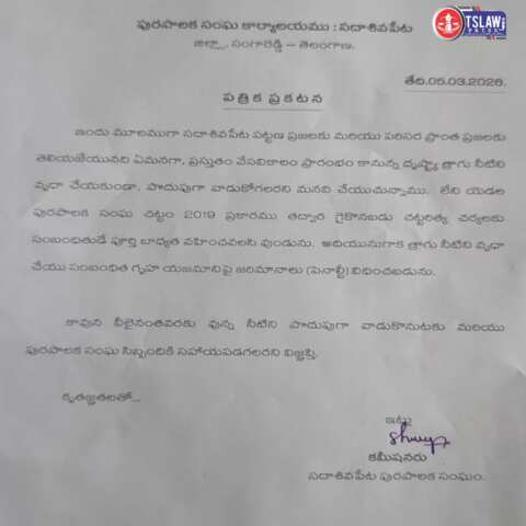 వేసవికాలం దృష్టిలో ఉంచుకో ని త్రాగు నీరు వృధా చేయరాదు ఆలా చేస్తే కటిన చర్యలు, సదాశివపేట మునిసిపల్ కమిషన్ టీ. శివాజీ.