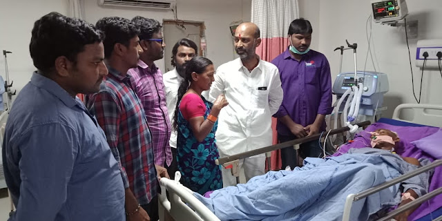 మృత్యువుతో పోరాడుతున్నా వెంకటేష్ ను కుటుంబాన్ని పరామర్శించిన కరీంనగర్ ఎంపీ బండి సంజయ్