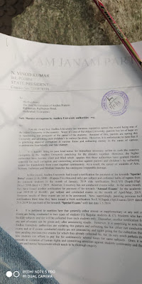 ఈ విధంగా డబ్బులు కట్టించుకుని పరీక్షలు నిర్వహించకుండా, ఒక వేళ్ళ నిర్వహించిన ఫలితాలు వెల్లడించకుండా, మళ్ళీ క్రొత్తగా స్పెషల్ ఎక్సమ్స్ పేరుతో డబ్బులు గుంజుతు న్నారు. ఈ విదంగా విద్యార్థులు భవిష్యత్తు తో  ఆటలు ఆడుకుంటున్నారు అని ఆంధ్రా యూనివర్సిటీ పై కొందరు గవర్నర్ నరసింహన్ గారికి వినతిపత్రం అందజేశారు. ఈ కుంభకోణం మొత్తానికి  బయటికి లాగడం కోఱకు CBI మరియు సిట్టింగ్ జడ్జి తో అత్యవసర సర్వే చేయించాలి అని పలువురు విద్యార్థులు వాపోతున్నారు.