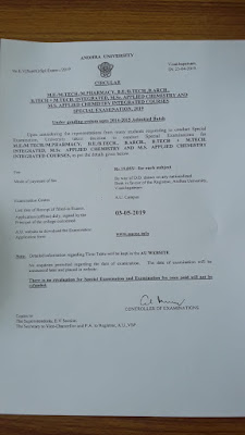 3). మాళ్ళీ ఇప్పుడు కోత్తగా స్పెషల్ ఎక్సమ్స్ పేరుతో 25.4.2019 నోటిఫికేషన్ ఇచ్చి చివర తేదీ 3.5.2019 అని ఒక్కోక్క సబ్జెక్ట్ కి Rs15000/- చెల్లించమంటున్నారు.