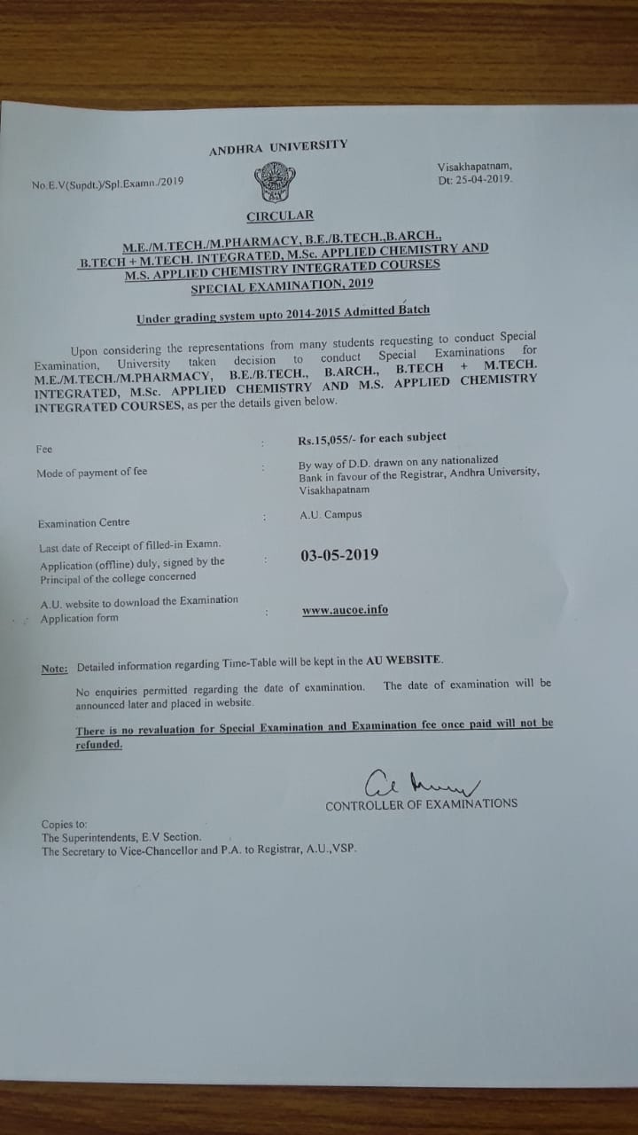 3). మాళ్ళీ ఇప్పుడు కోత్తగా స్పెషల్ ఎక్సమ్స్ పేరుతో 25.4.2019 నోటిఫికేషన్ ఇచ్చి చివర తేదీ 3.5.2019 అని ఒక్కోక్క సబ్జెక్ట్ కి Rs15000/- చెల్లించమంటున్నారు.