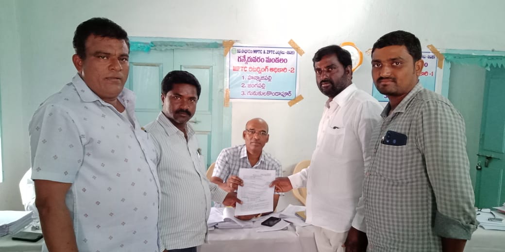 కరీంనగర్ జిల్లా గన్నేరువరం మండలకేంద్రంలో గ్రామ పంచాయతీ కార్యాలయంలో బీజేపీ పార్టీ నుంచి గునుకుల కొండాపూర్ ఎంపీటీసీ అభ్యర్థిగా గునుకుల నర్సింహారెడ్డి ఎన్నికల అధికారికి నామినేషన్ పత్రాలను సమర్పించారు తనవెంట బలపర్చిన నగపురి శంకర్ పగిడి మహేందర్ ప్రకాష్,రాజు ఉన్నారు