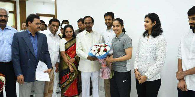 తెలంగాణ రాష్ట్ర ముఖ్యమంత్రి కేసీఆర్ ను ఇవాళ కామన్వెల్త్ గేమ్స్ 2018 విజేతలు కలిశారు. ఈ సందర్భంగా కామన్వెల్త్ క్రీడల్లో పతకాలు సాధించిన వారిని సీఎం కేసీఆర్ అభినందించారు. క్రీడాకారులతో పాటు బ్యాడ్మింటన్ కోచ్ పుల్లెల గోపిచంద్ను కూడా కేసీఆర్ ప్రత్యేకంగా అభినందించారు. కామన్వెల్త్లో తెలంగాణకు చెందిన వారు మెడల్స్ సాధించడంపై కేసీఆర్ హర్షం వ్యక్తం చేశారు. రాష్ర్టానికి, దేశానికి మంచి గౌరవం తీసుకువచ్చారన్నారు. భవిష్యత్లో మరెన్నో విజయాలు సాధించాలని ఈ సందర్భంగా కేసీఆర్ ఆకాంక్షించారు.అంతర్జాతీయ స్థాయిలో రాణించిన క్రీడాకారులను ప్రోత్సహిస్తామని తెలిపారు. ప్రభుత్వ ఉద్యోగాల్లో క్రీడాకారులకు 2 శాతం రిజర్వేషన్లు కల్పిస్తామని సీఎం తెలిపారు.